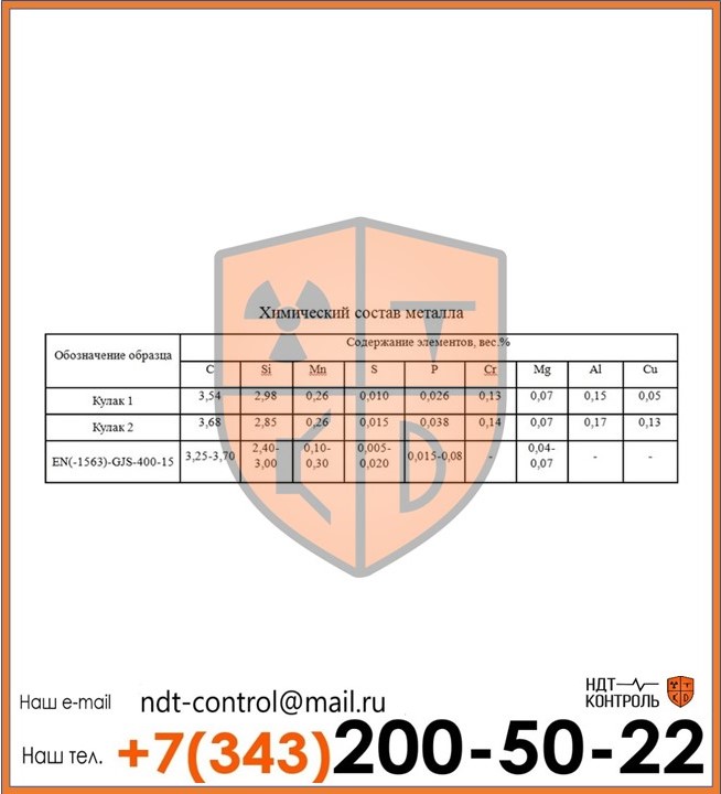 Лаборатория неразрушающего контроля «НДТ-контроль» проводит эффективный анализ состава металла в Нижнем Тагиле. Предприятие располагает всем необходимым для высокоточного определения химического состава, количественного содержания и качественных свойств веществ, примесей и элементов, содержащихся в металлических сплавах и сталях. Эксперты компании гарантируют полный контроль над качеством металлических изделий, а также детальную экспертизу состава металла. Диагностика методами неразрушающего контроля позволяет не только вынести заключение о качестве, составе и свойствах металлов, но выявить причины появления дефектов или неисправностей на металлических конструкциях и изделиях из стали. Узнать подробную информацию о методах НК, стоимость анализа химического состава металлов, а также перечень услуг, предоставляемых лабораторией «НДТ-контроль» можно узнать на сайте, или у консультантов компании по указанным в разделе «Контакты» телефонам.